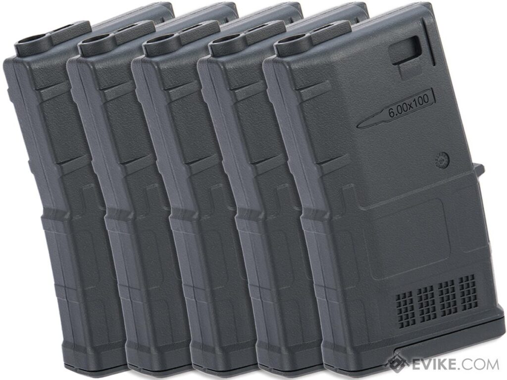 5x Cargadores Midcap AMAG Tipo DMR para M4 de Airsoft / ARES / AEG (Color: Negro)