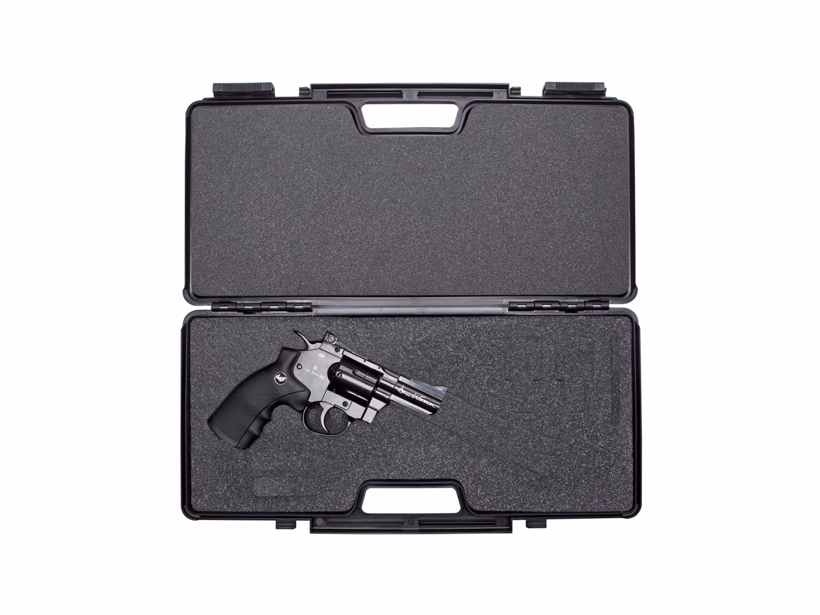- Interior con espuma suave precortada, ajustable al revólver y accesorios.