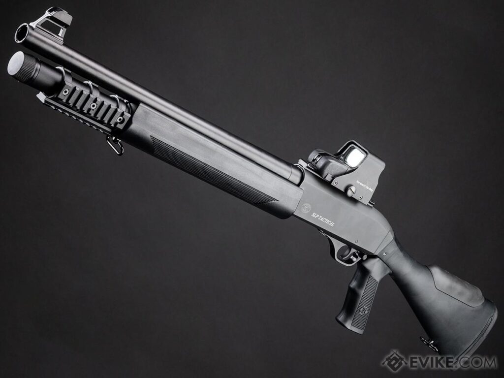La escopeta semi-automática Cybergun FN Herstal con licencia SLP Tactical operada por CO2 no es como ninguna otra escopeta en el mundo del Airsoft. Siendo una de las únicas escopetas en formato semi-automático que utiliza las vainas de escopeta estándar de la industria al estilo Marui de 30 disparos, la SLP también se distingue al permitir al usuario decidir si quieren tirar 3 disparos a la vez, o un solo disparo para objetivos a mayor distancia.