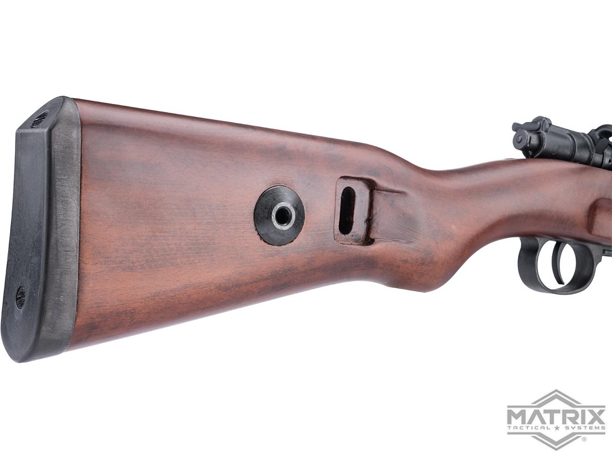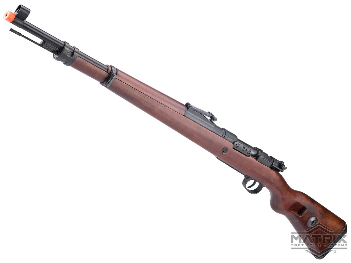 Matrix realiza una labor excepcional al recrear este rifle histórico para airsoft y recreaciones históricas. La culata de madera teñida está bellamente elaborada y añade un peso muy deseado al peso total del rifle. El mecanismo del cerrojo es muy suave y tiene un bloqueo muy sólido con mínima holgura.
