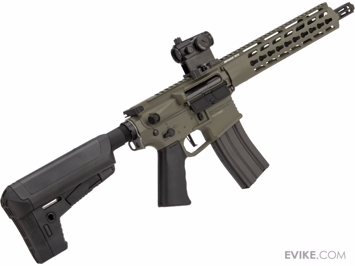 La Trident MK2 CRB es una carabina modernizada que se destaca en espacios reducidos y en enfrentamientos al aire libre. La Trident MK2 CRB utiliza un cañón de 10.5 y un guardamanos keymod KRISS® TR110 con licencia y de libre flotación de 10″. El protector de mano KRISS® tiene tres puntas en la parte delantera que se pueden usar para sujetar la réplica contra barricadas, lo que elimina la necesidad de un accesorio.