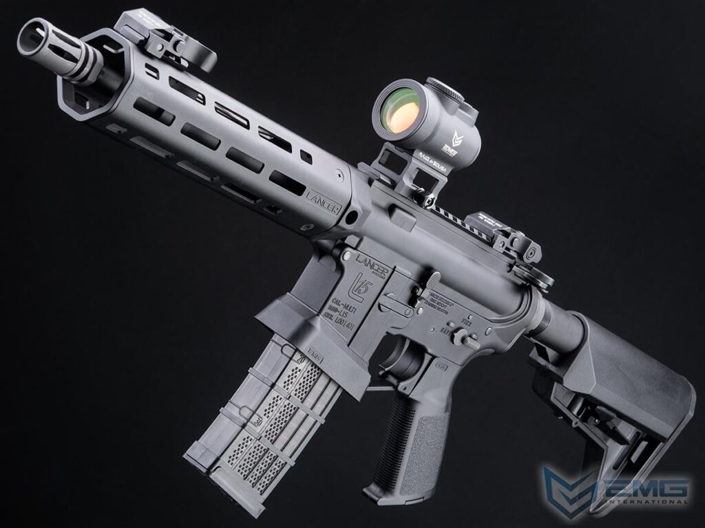 El L15 Defense de Lancer es un rifle avanzado basado en la plataforma AR15, con mejoras en ergonomía y control. Producido por King Arms, destacado fabricante de Airsoft, cuenta con internals actualizados y un sistema MOSFET. Evike Manufacturing Group (EMG) crea versiones de entrenamiento de alta calidad, ensambladas y probadas en EE. UU., asegurando su durabilidad para el entrenamiento profesional.