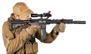 Este supresor viene con un diámetro más pequeño que el supresor estándar, lo que permite integrarlo en la mayoría de los guardamanos M4, incluido el SSR4.