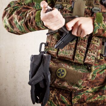 Coloca tus guantes o tu protección facial durante los descansos y asegúralos cerrando el anillo en D. De hecho, puedes conectar o sujetar cualquier cosa a estos, llaves, gorras, esposas, lo que sea que consideres necesario.