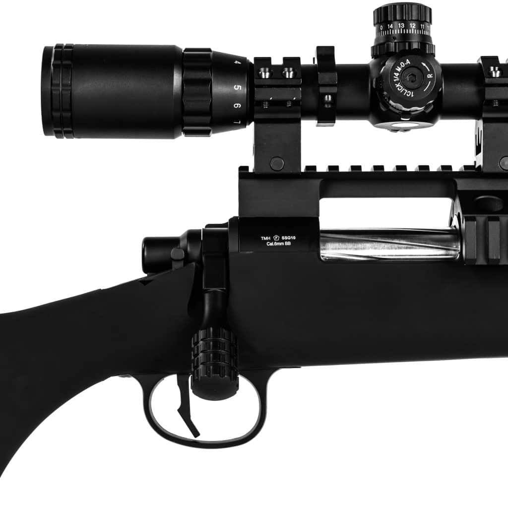 Cuando se voltea hacia abajo, la manija del cerrojo ampliada tiene un perfil bajo para asegurarse de que no se enrede cuando se mueve por el campo de batalla.