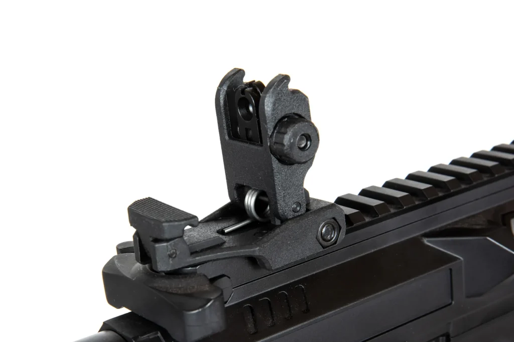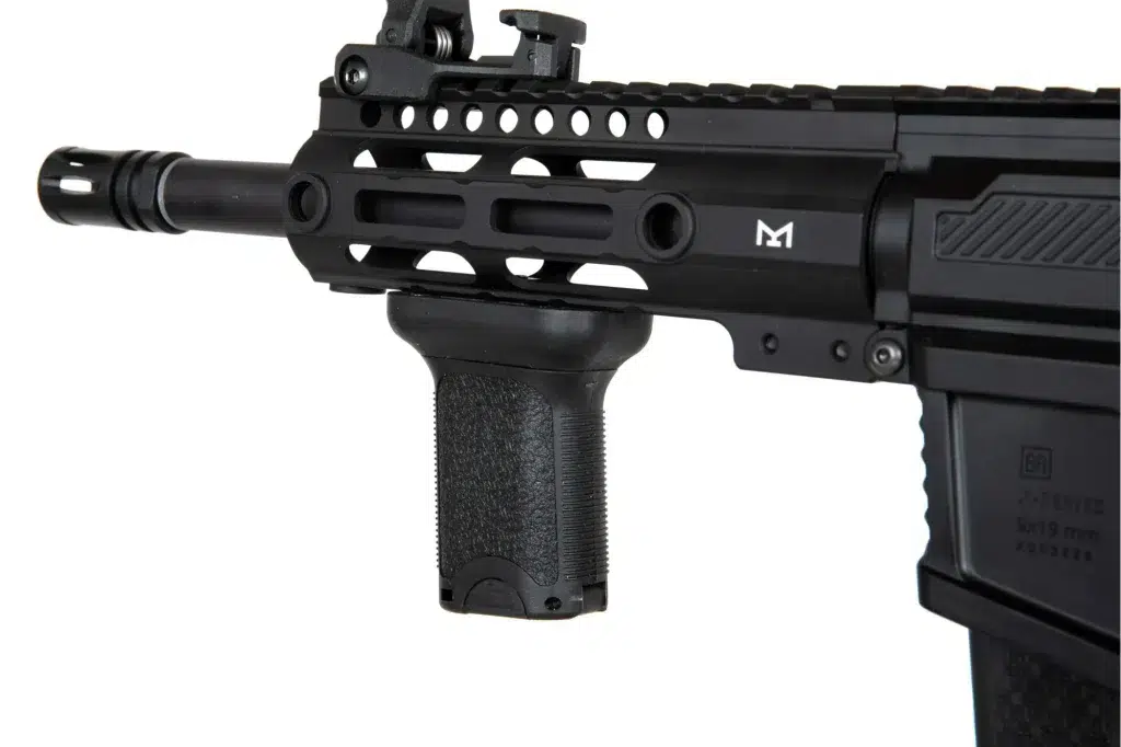 Réplica SMG. Guardamanos con riel M-LOK en los lados y abajo. Riel Picatinny en la parte superior.