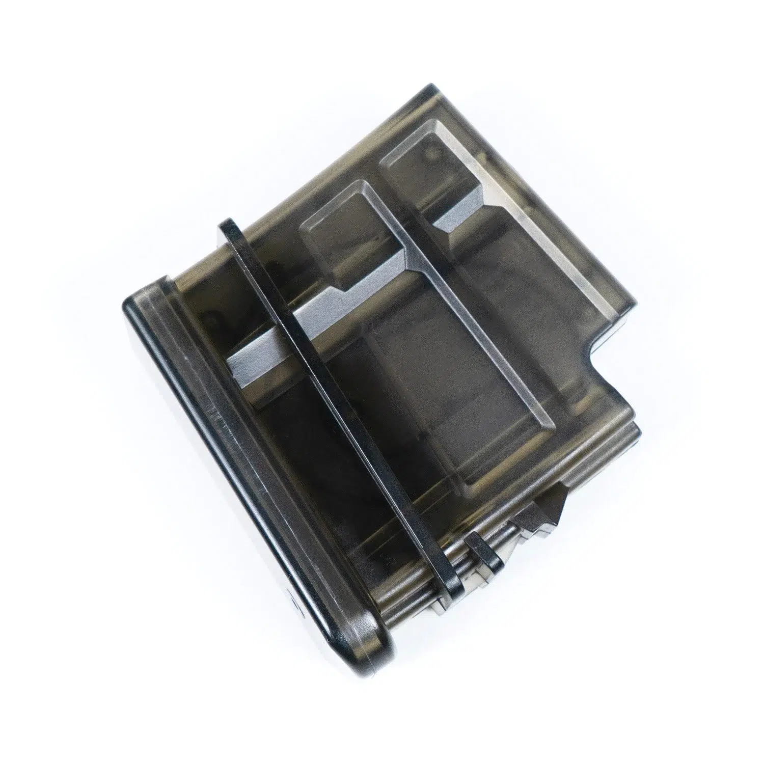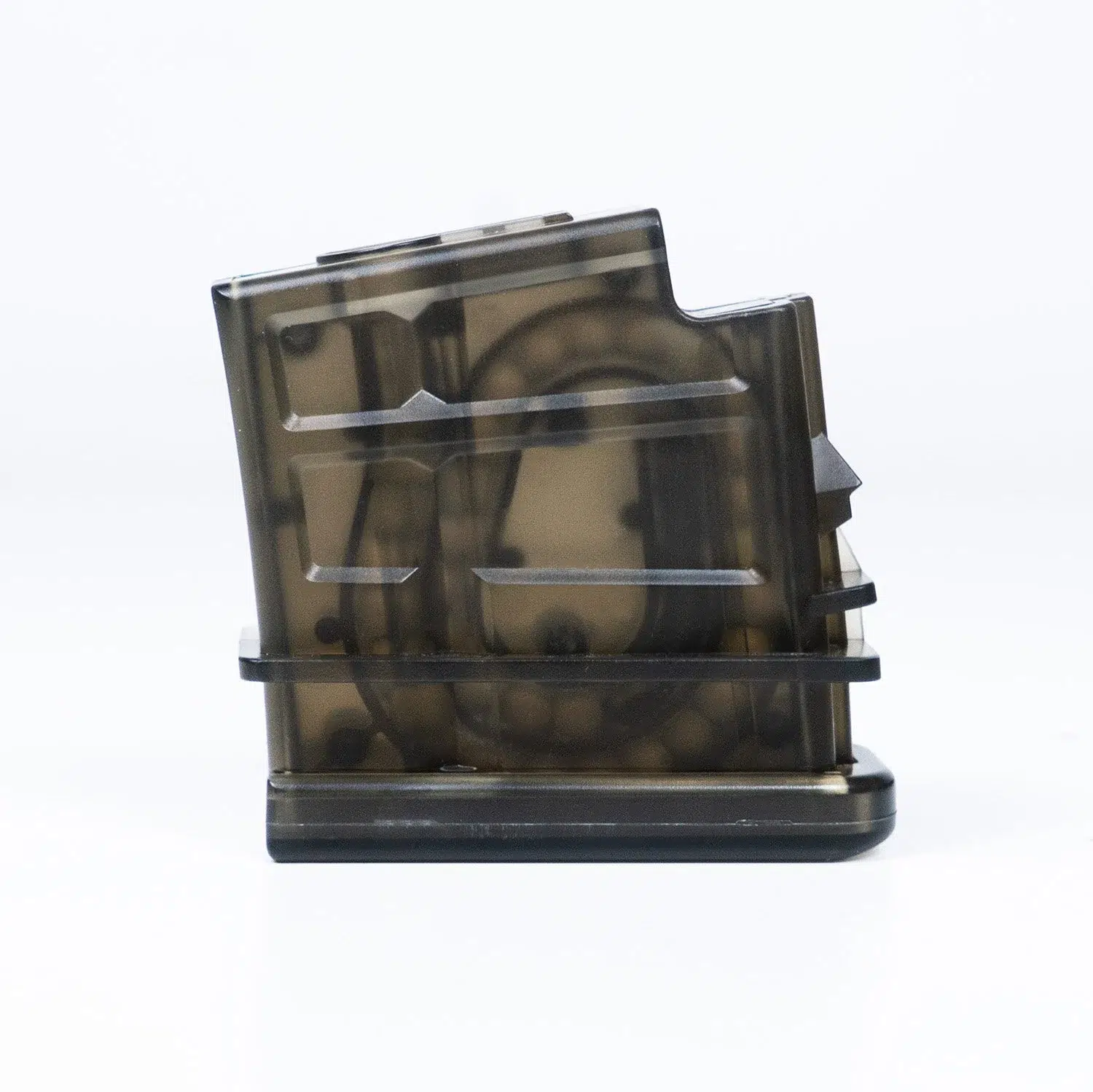 Con una capacidad mejorada de 65 BBs, este cargador de doble hilera ofrece la mayor capacidad del mercado. Su diseño transparente permite revisar fácilmente las BB restantes, a la vez que garantiza una fácil maniobrabilidad y recargas rápidas sin interrupciones.