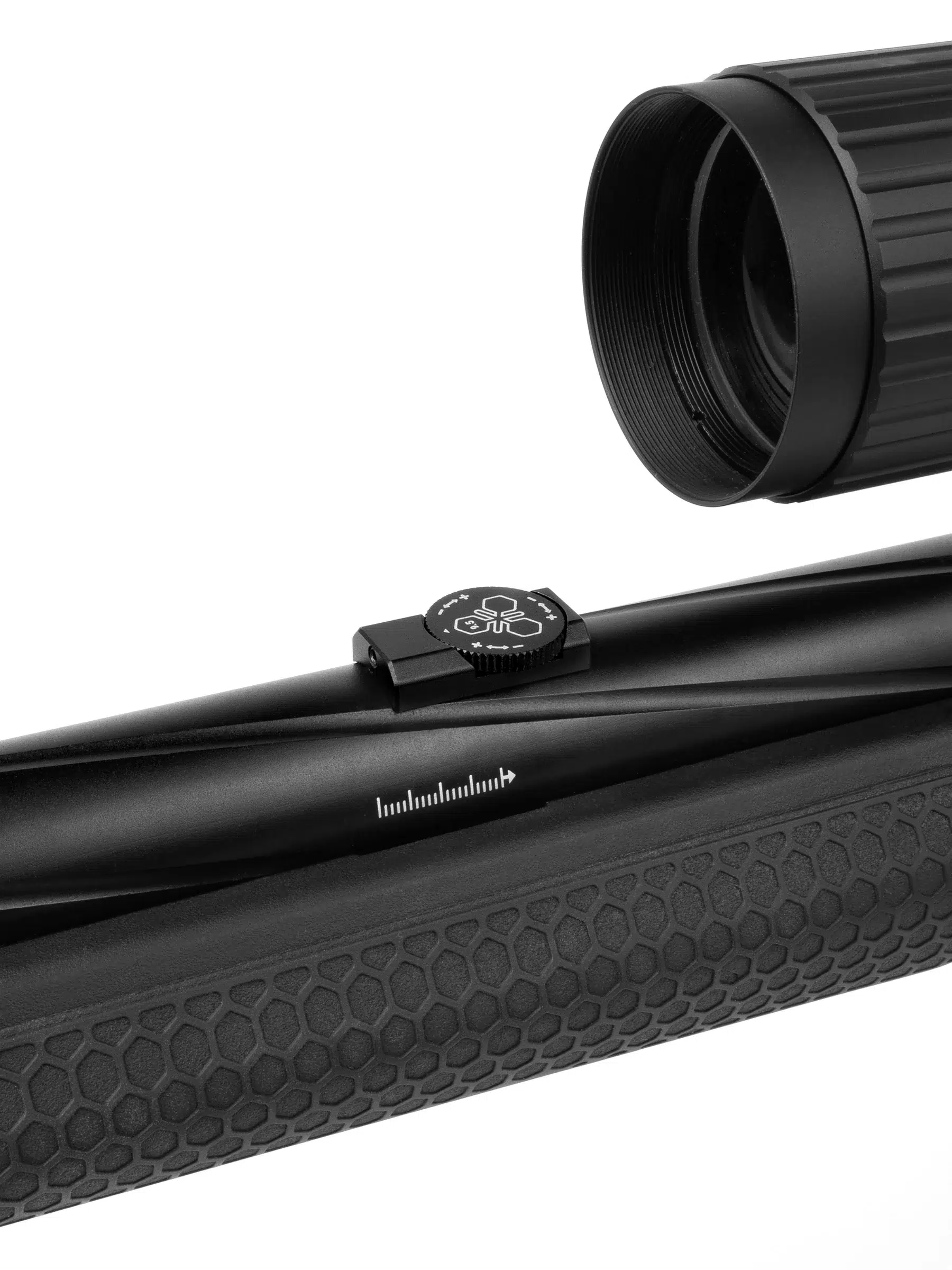 Requiere un espacio libre de sólo 5 mm, lo que significa que no estorbará a ninguna mira, incluso a las que usan scope extenders.